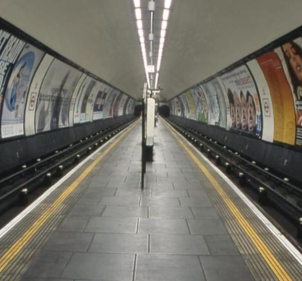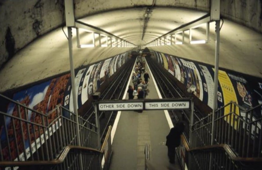 The station platforms are located in a single tunnel, 30 feet in diameter, with a narrow island platform and tracks either side. The only other station with this configuration nowadays is Clapham Common, one stop to the south. Both stations are regularly mentioned for the ‘scary’ platforms and it is understandable that during rush hour or incidents causing overcrowding that such a platform will alarm a fair number of people.