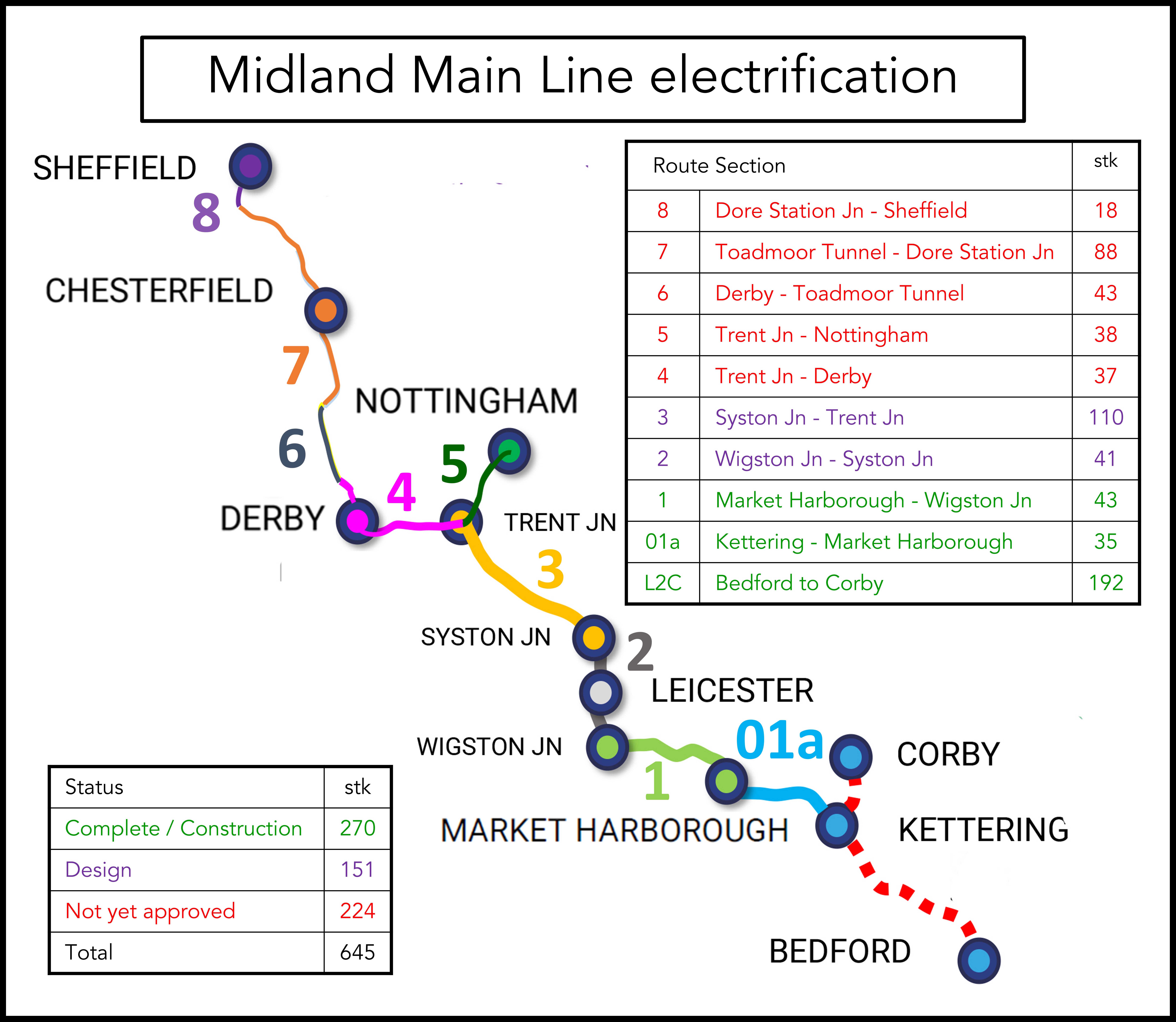 She considered how Network Rail is supporting the supply chain by becoming a better client for the Midland Main Line (MML) electrification programme of which 130km of its 330 route km has already been electrified. Work to Wigston, just south of Leicester has been authorised as has a £500 million programme to upgrade the London to Bedford overhead line for 125mph running. However, uncertainty remains about the approval of electrifying the remaining 137 route km.